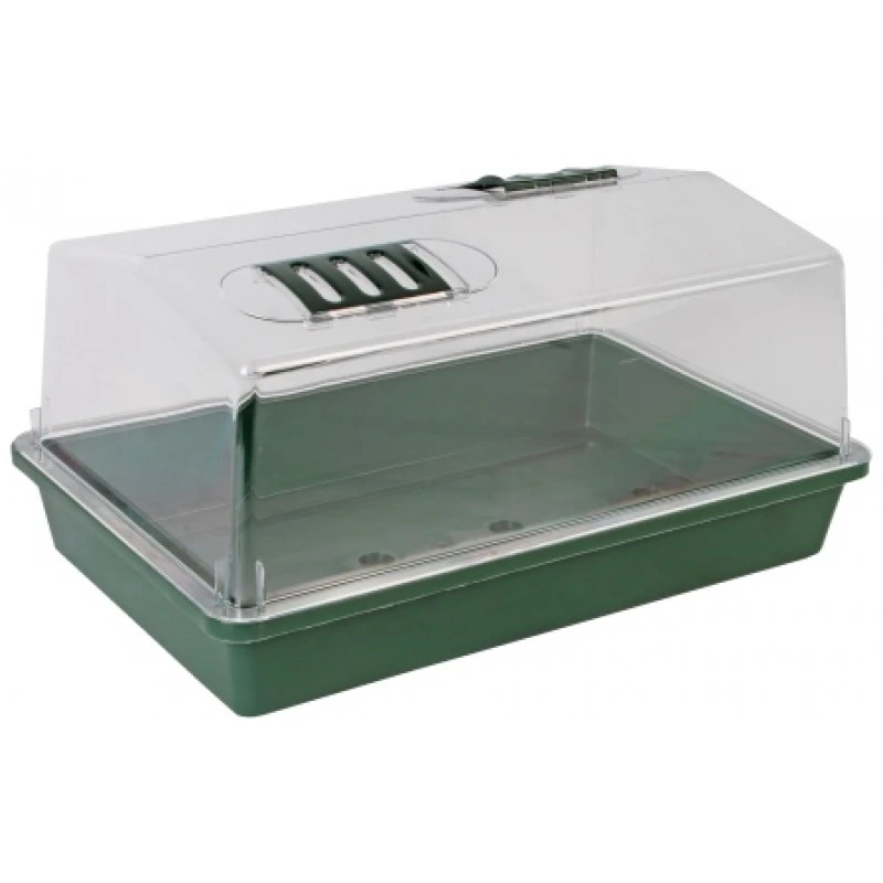 Een kweekkas met overkapping is geschikt voor het ontkiemen van zaden, door de overkapping ontstaat er in de bak een kaseffect. Met de ventilatieschuifje kunt u de controle houden over de temperatuur.
